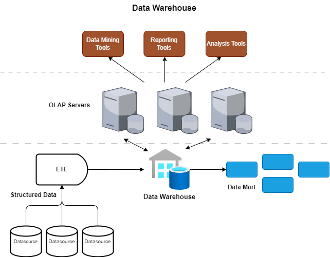 A data warehouse is a specialized database system designed for the storage, retrieval, and analysis of structured data. It serves as a central repository for an organization’s historical data, primarily focusing on structured and well-defined data sources.