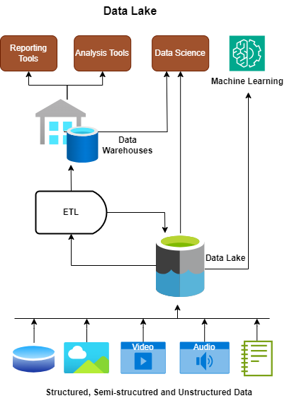 A data lake is a central repository for storing vast amounts of raw, semi-structured, and unstructured data at scale. Unlike traditional databases, data lakes are designed to handle data in its native format without the need for prior structuring.