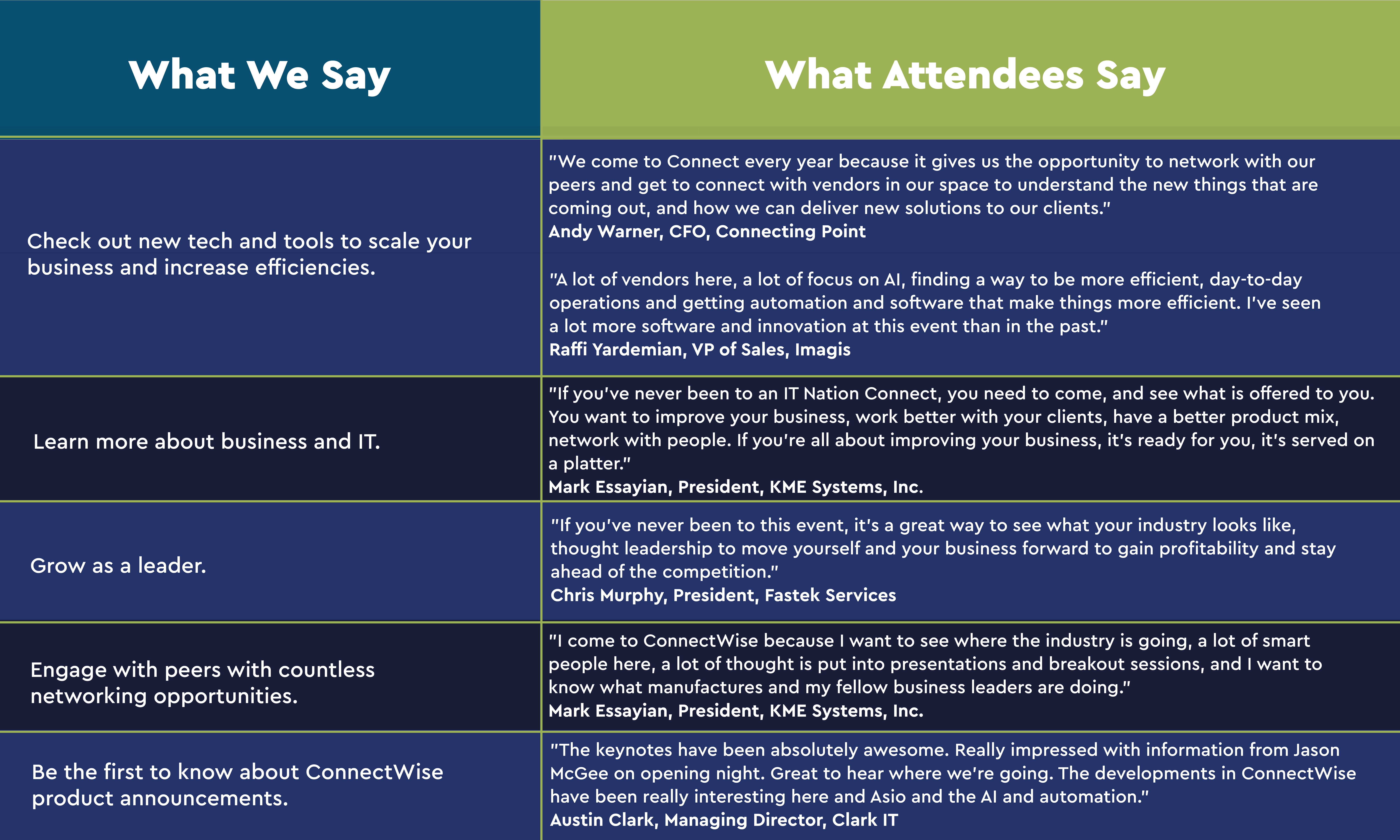 IT Nation Connect is known for bringing together the brightest minds in the industry. Its reputation precedes it, and it offers countless opportunities for attendees, including
