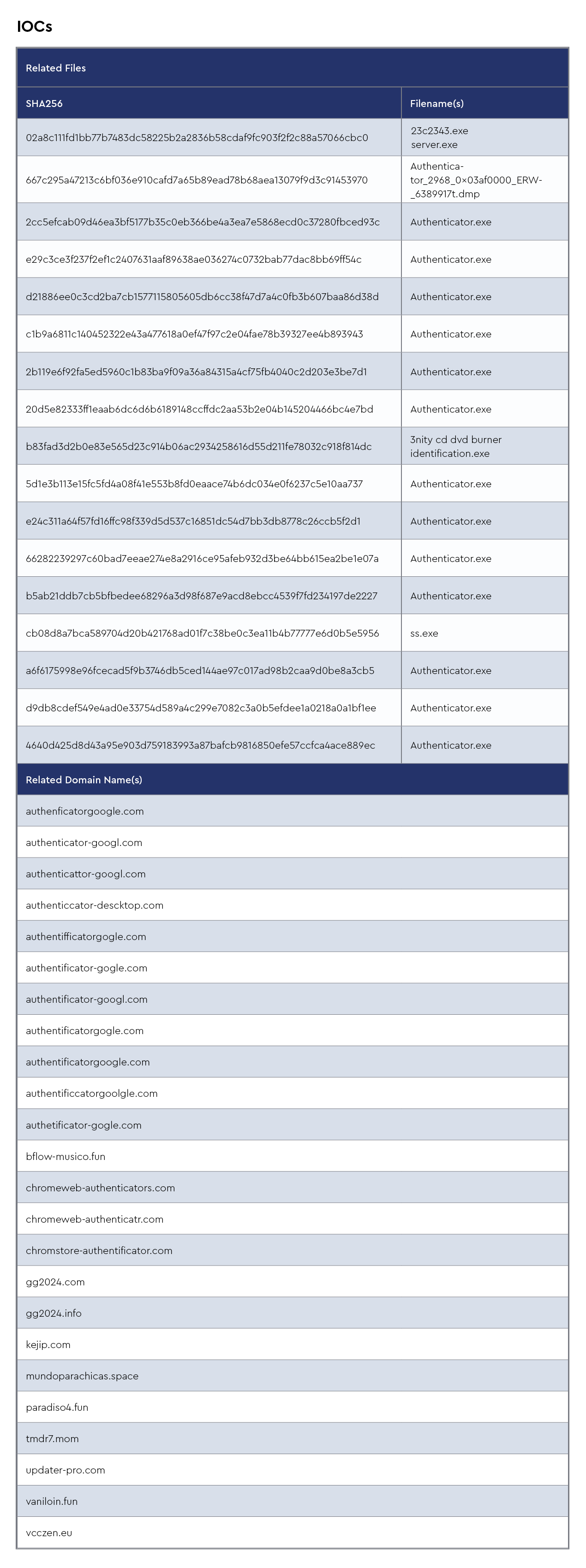 We recently reported that DeerStealer was being distributed through malicious Google search ads, which impersonate Google Authenticator software download sites. Victims are redirected through a series of URLs before landing on a phishing page that closely resembles an official Google site. This type of [T1608.006] SEO poisoning and [T1583.008] malvertising is increasingly affecting our managed service provider (MSP) partners and their clients. The malicious campaign has highlighted the ongoing challenges of malvertising and the need for heightened vigilance against such social engineering tactics.