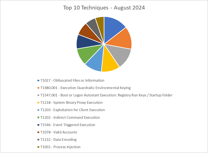 Figure 3: Top 10 MITRE ATT&CK techniques observed in August 2024