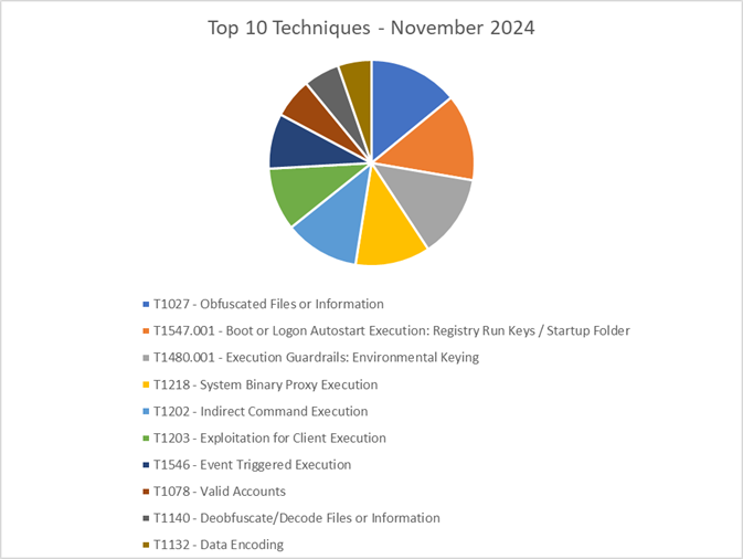 Figure 2: Top 10 MITRE ATT&CK techniques observed in November 2024