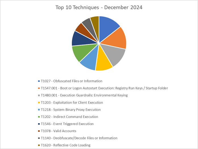 Figure 3: Top 10 MITRE ATT&CK techniques observed in December 2024