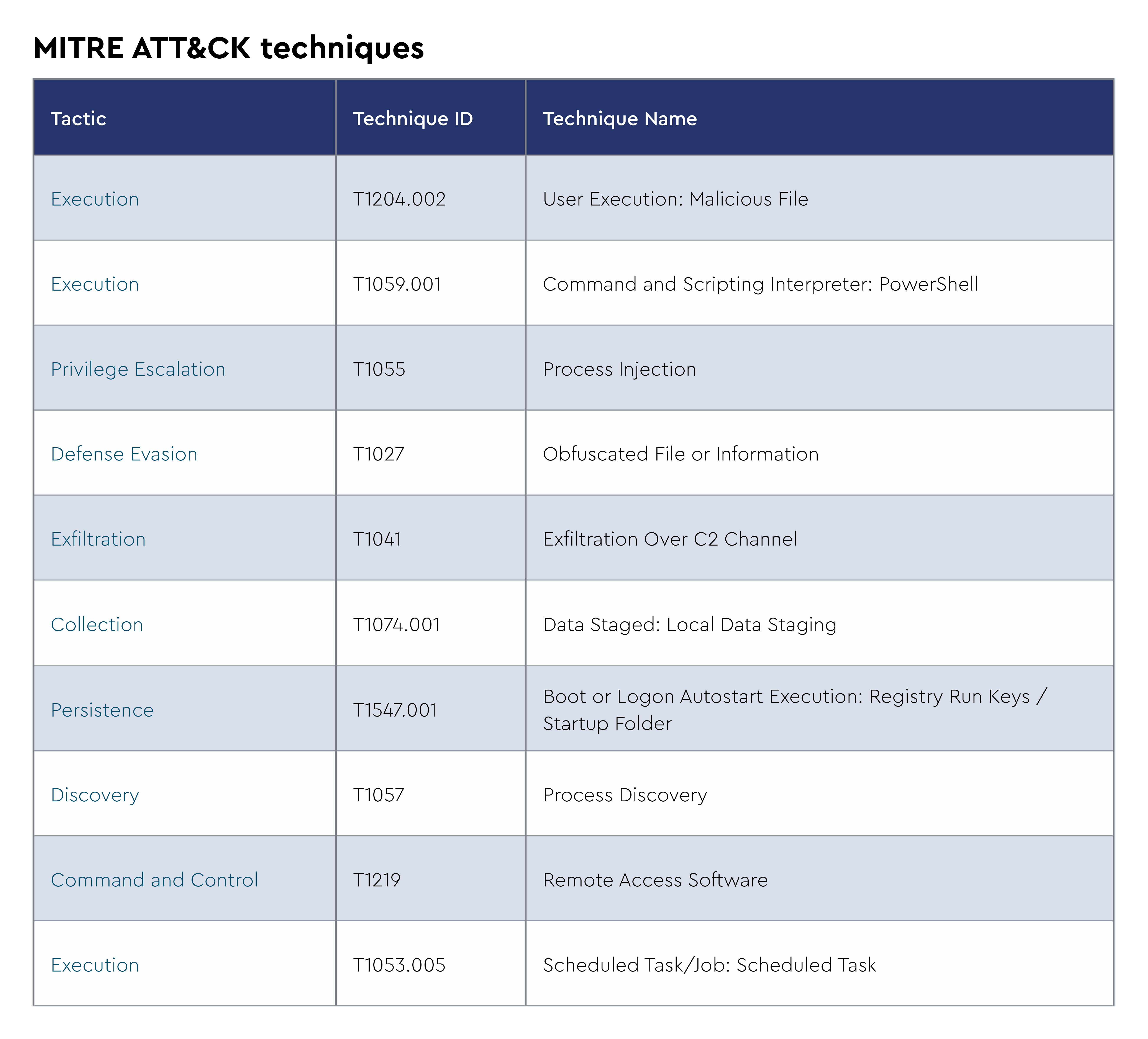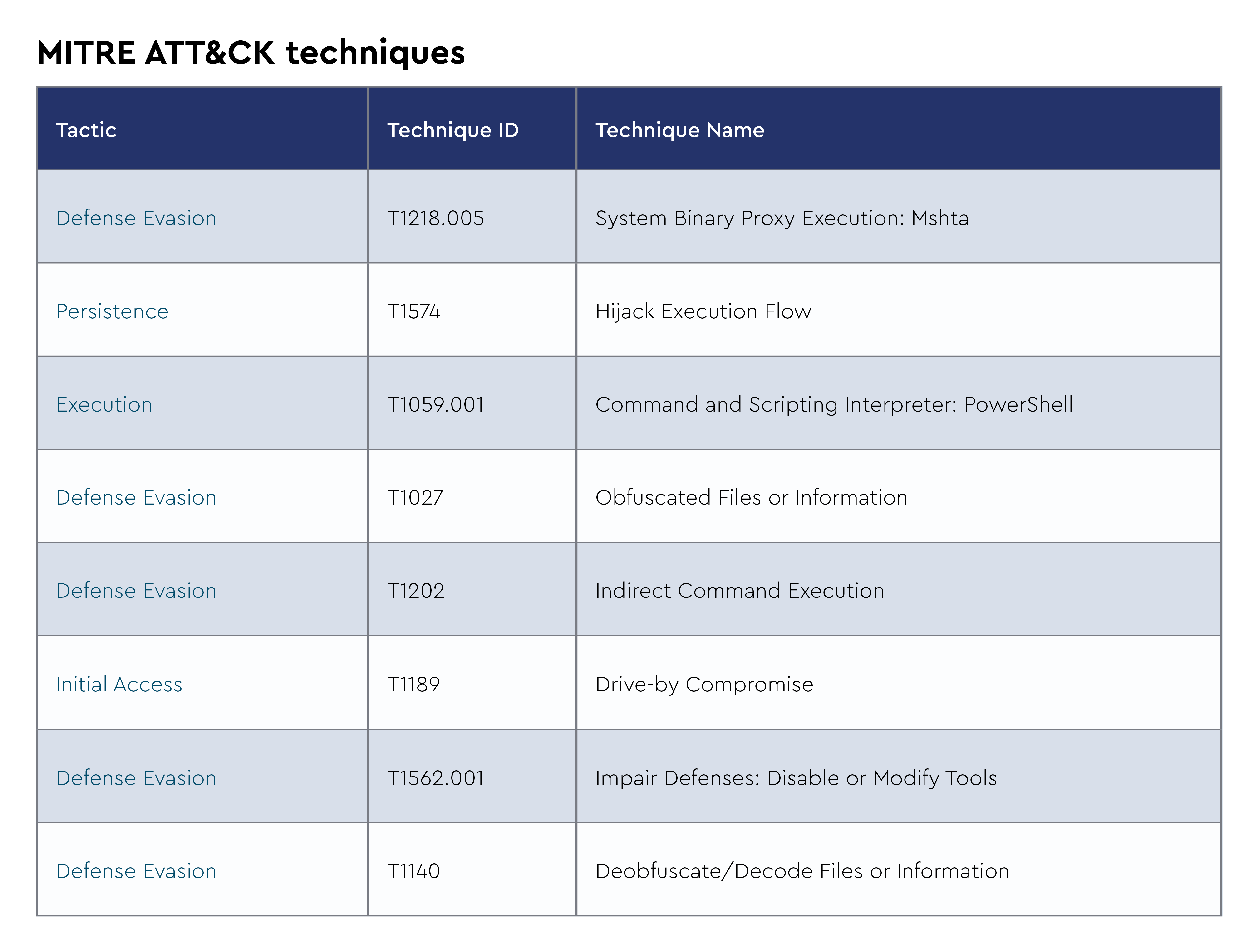 Additionally, the malware employs system binary proxy execution techniques, such as using “mshta.exe” to execute malicious code, further enhancing its stealth. This combination of tactics allows it to effectively bypass traditional security measures, posing significant challenges for detection and mitigation.