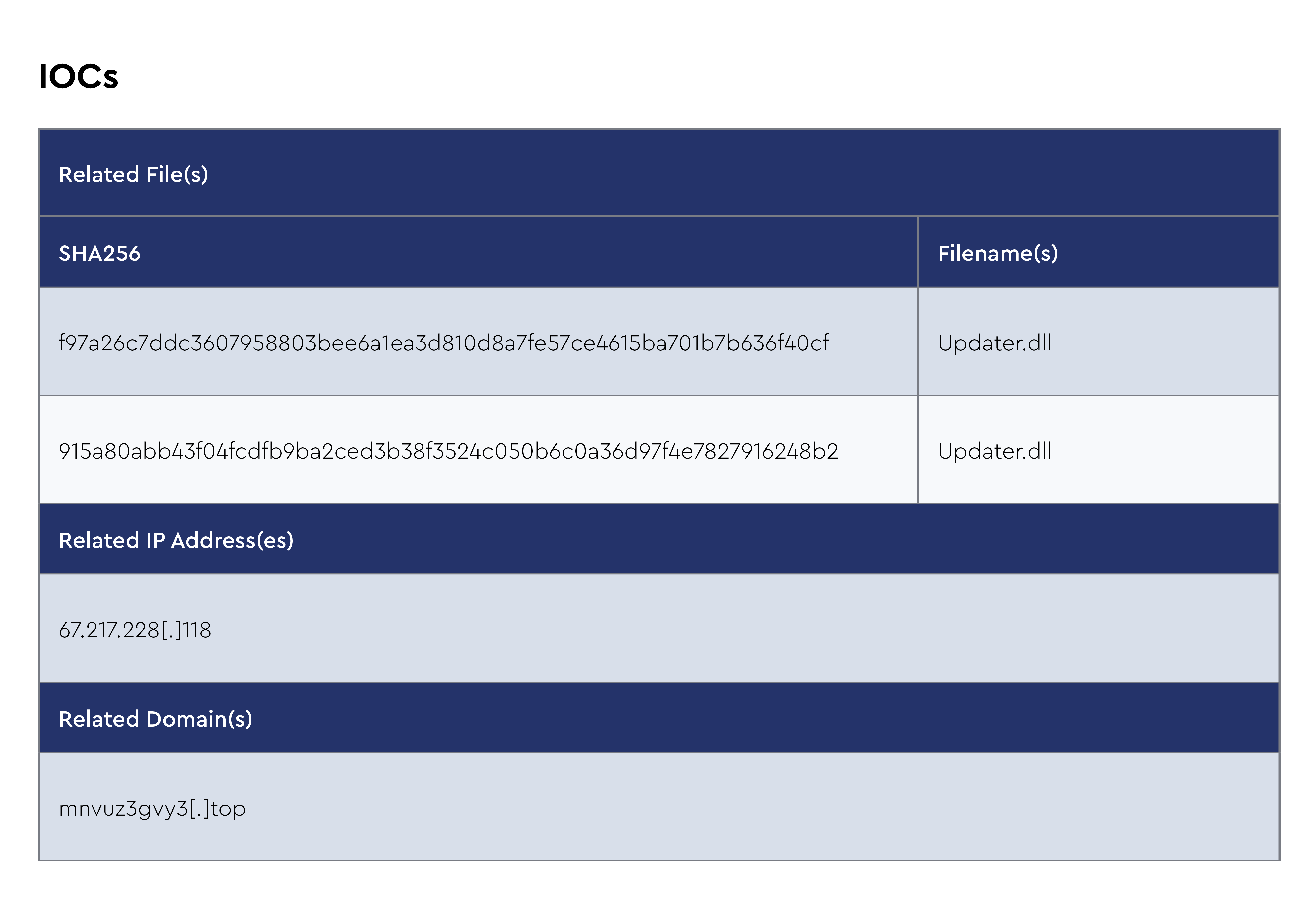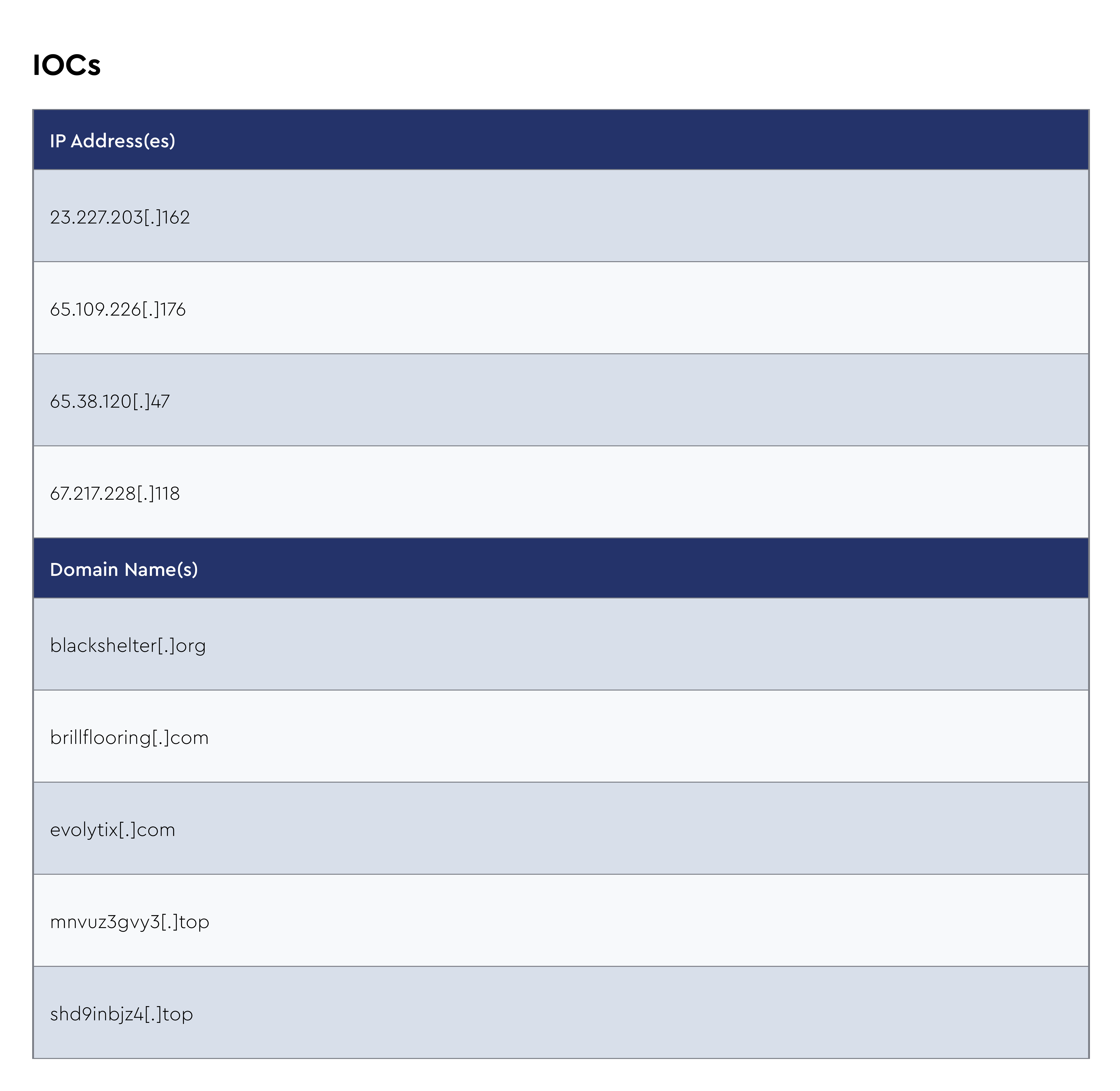 The CRU collects indicators of compromise (IOCs) from public open-source intelligence (OSINT) sources and any cybersecurity incident escalated by the ConnectWise security operations center (SOC). These IOCs are used for automated threat hunting and data enrichment to assist SOC analysts. Below is a summary of the IOCs collected.