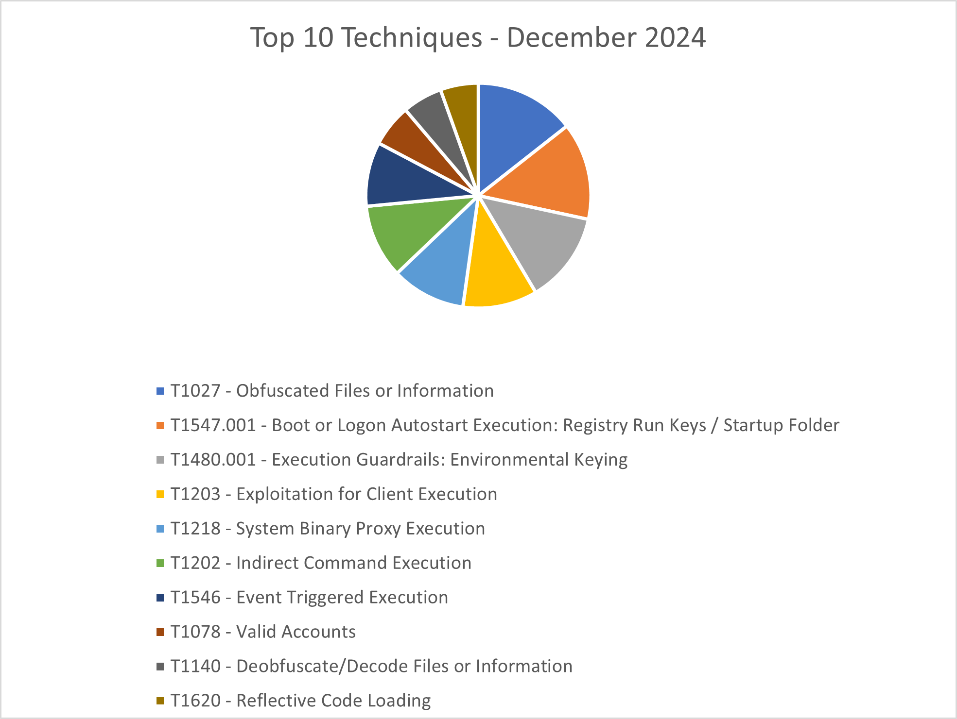 Figure 2: Top 10 MITRE ATT&CK techniques observed in December 2024