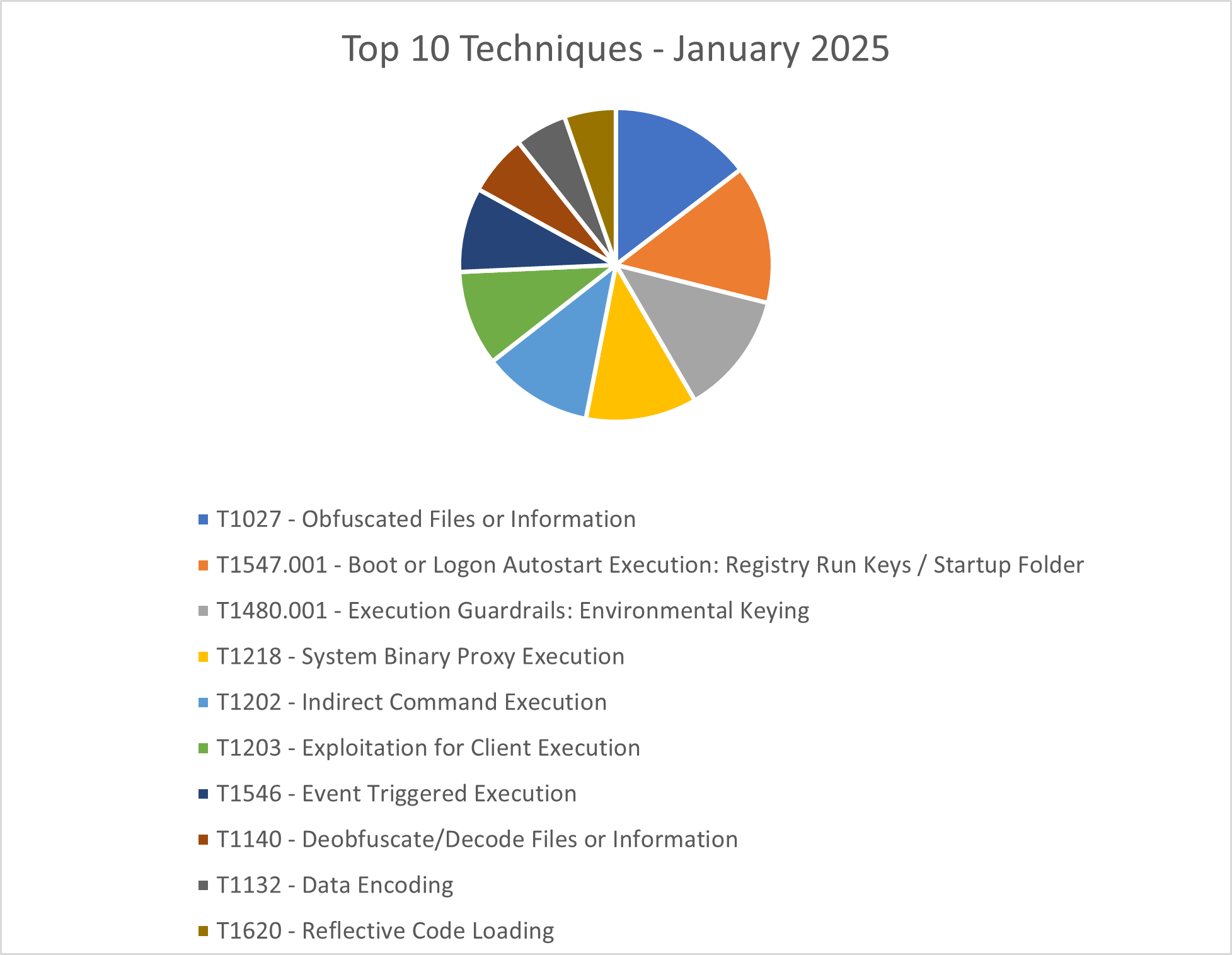 Figure 3: Top 10 MITRE ATT&CK techniques observed in January 2025