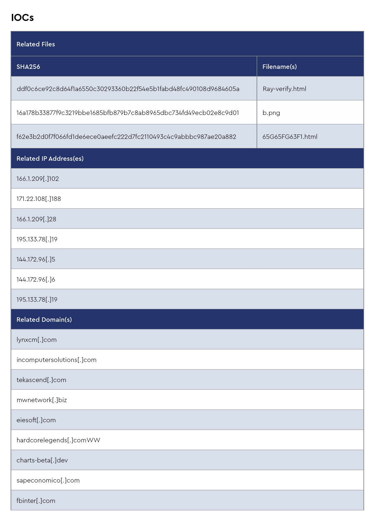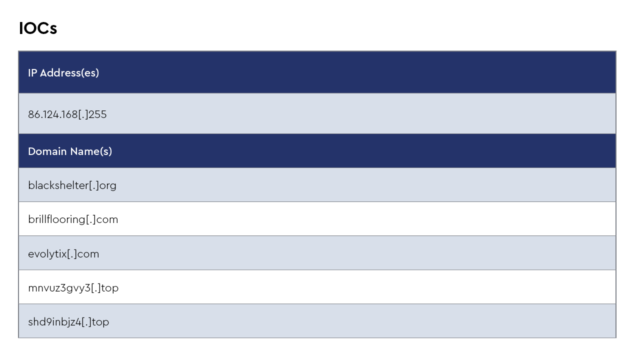 The CRU collects indicators of compromise (IOCs) from public open-source intelligence (OSINT) sources and any cybersecurity incident escalated by the ConnectWise security operations center (SOC). These IOCs are used for automated threat hunting and data enrichment to assist SOC analysts. Below is a summary of the IOCs collected.