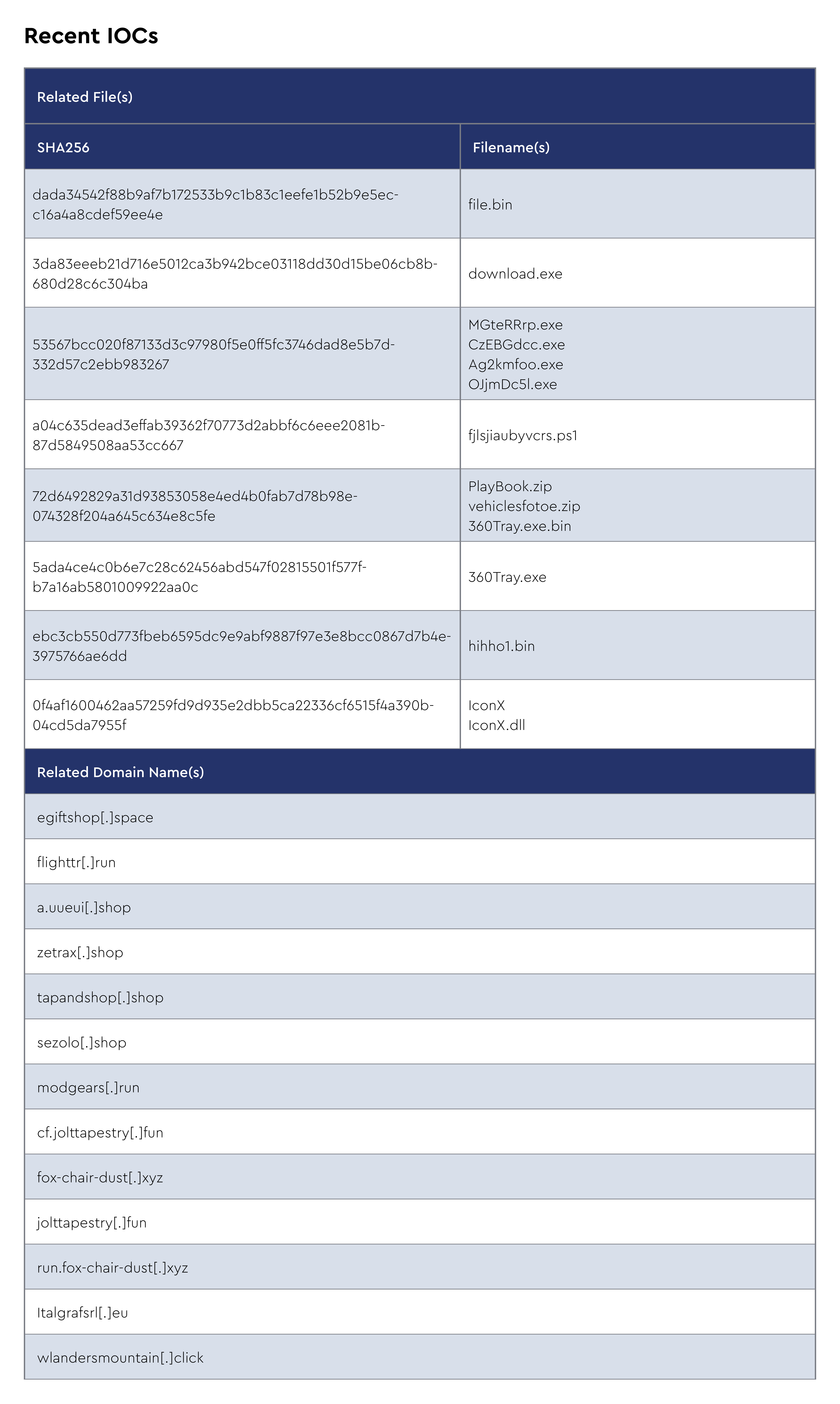 In May 2025, the CRU observed Lumma being used with Penguish and HijackLoader in multi-stage attacks. HijackLoader, a modular loader active since 2023, delivers Lumma and other payloads by decrypting PNG files and uses techniques such as Heaven's Gate to bypass security software. These May campaigns used fake CAPTCHA sites that tricked users into running malicious PowerShell commands, with researchers estimating up to 5,000 such sites were involved. The operation was disrupted in mid-May 2025 when Microsoft's Digital Crimes Unit, the FBI, Europol, and international partners seized approximately 2,300 domains that formed Lumma's infrastructure, significantly reducing but not eliminating the threat.