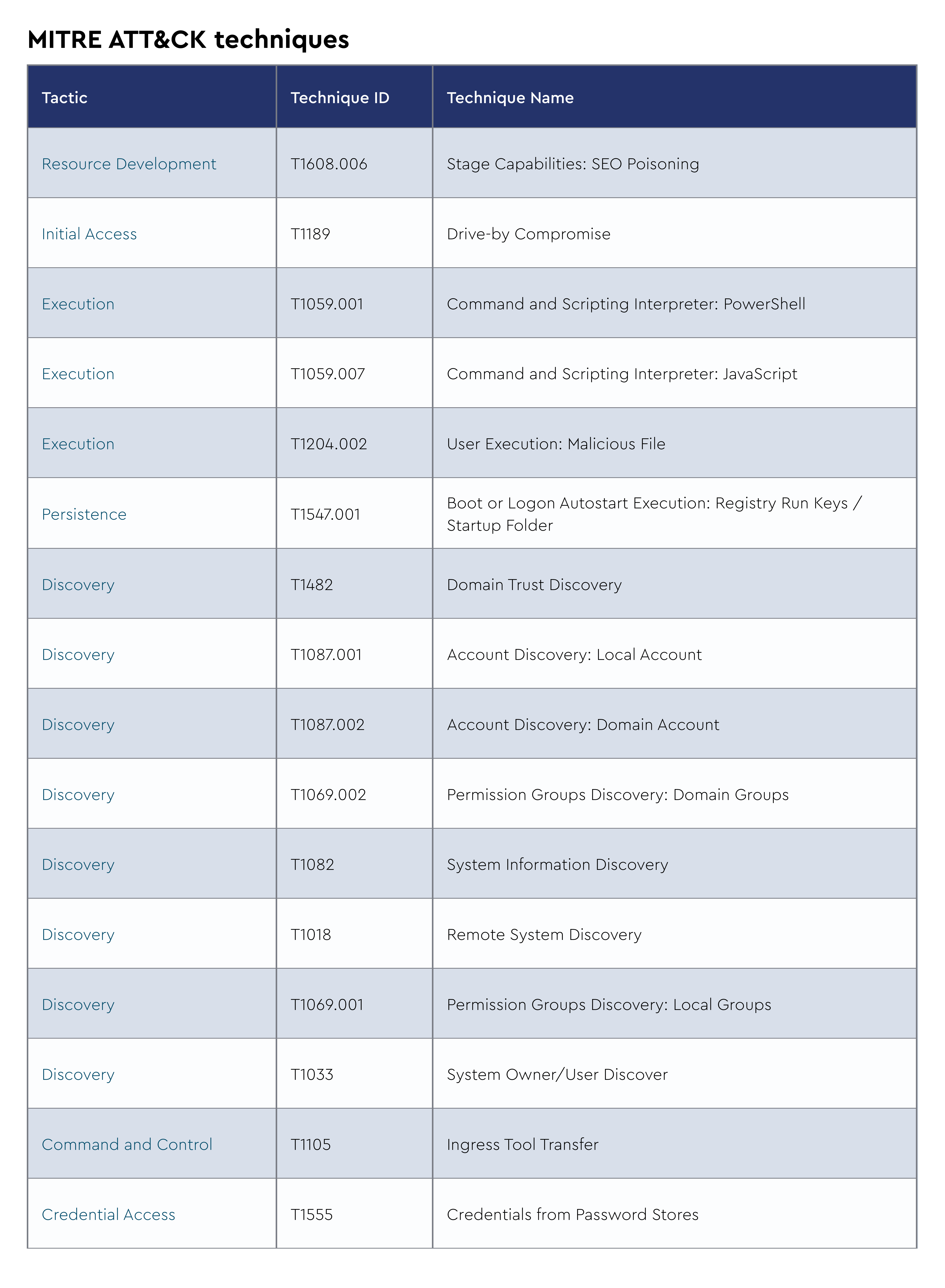 As observed by the CRU in May 2025, SocGholish was used in conjunction with NetSupport RAT and StealC in SmartApeSG campaigns, demonstrating its continued role as an initial access facilitator for multi-stage attacks. TA569 monetizes access gained through SocGholish infections by selling compromised system access to other cybercrime groups, including Indrik Spider, who deploy secondary payloads such as Cobalt Strike, ransomware (DoppelPaymer), and information stealers (CHTHONIC, DRIDEX, AZORULT). The malware's sophisticated evasion techniques include eligibility checks to avoid analysis environments, obfuscated JavaScript code, and careful campaign management that makes incident response analysis particularly challenging for defenders.
