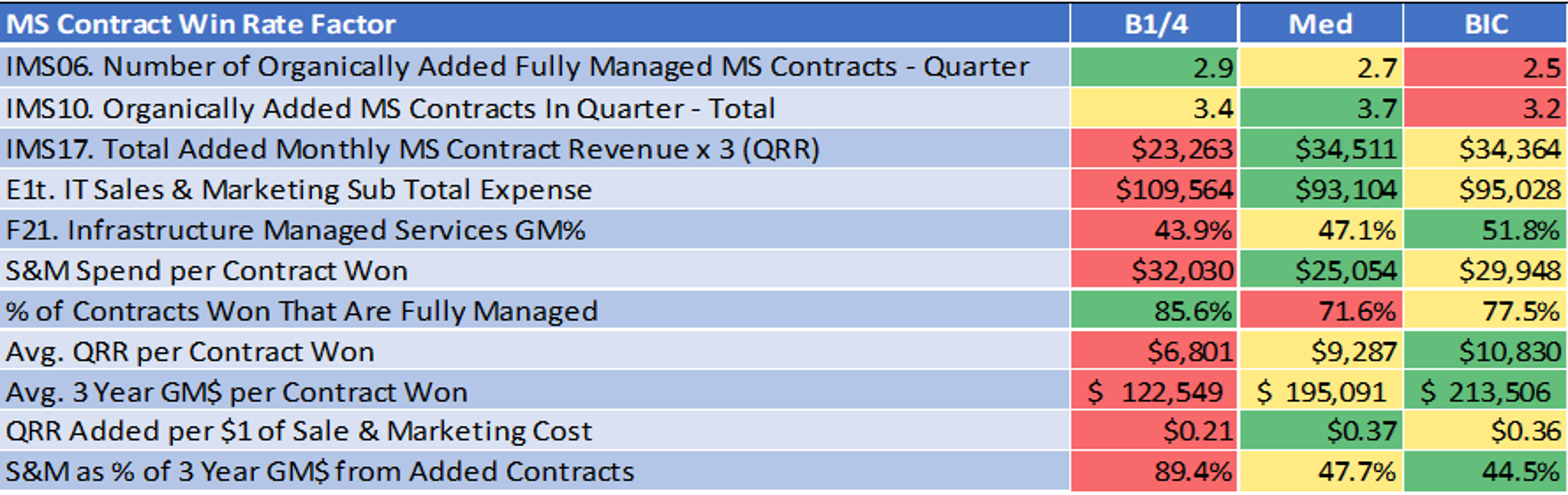 We analyzed the true cost of acquisition to add a new full Managed Services customer. This analysis was over a five-year period, 2017-2021. The math was simple, we looked at how many new agreements were added per quarter, factored in the revenue and services gross margin for those agreements, then determined Sales & Marketing expense per agreement. By determining each of these, we were able to determine, if the customer stayed for three years, how much gross margin would each of those agreements generate and what percentage of gross margin would be used up by Sales & Marketing acquisition expenses.