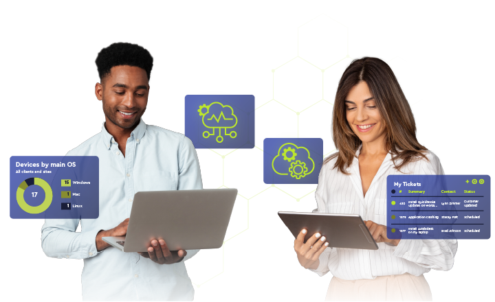 Complete IT management: connected and unified remote monitoring and management, ticketing, quoting, cybersecurity, and more. |