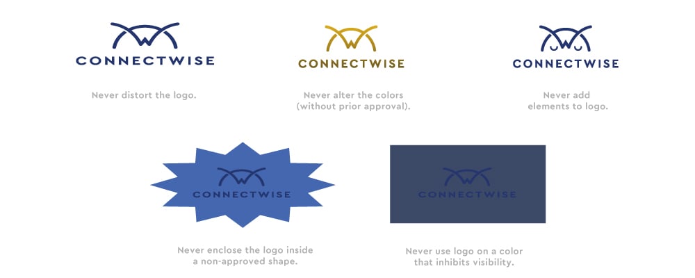 - Always follow official logo usage guidelines for ConnectWise and each child brand.
