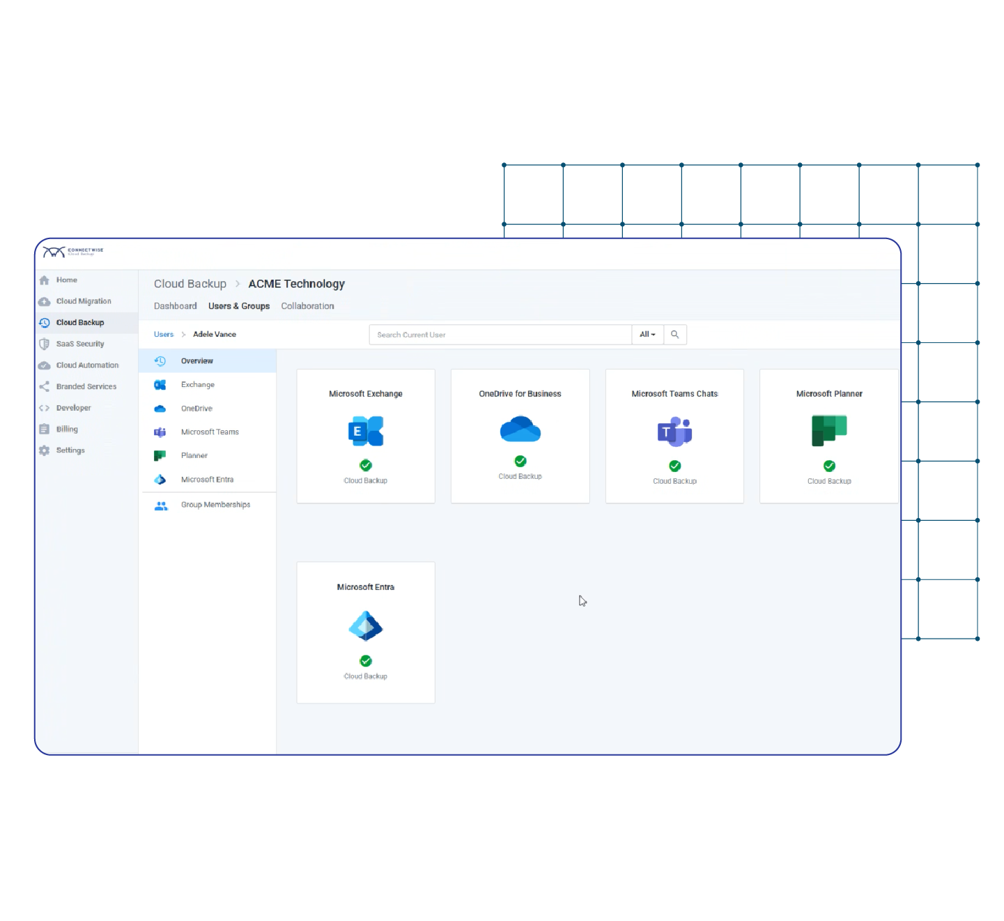 - Comprehensive protection for Exchange, OneDrive, SharePoint, Groups, Teams, Planner, and Entra ID