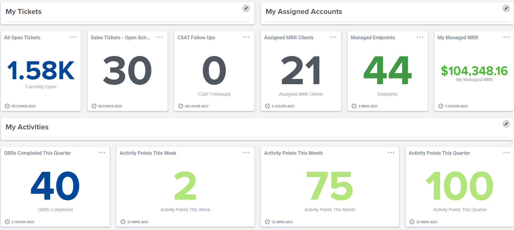 Connect your integral business tools into Reports and Dashboards (formerly BrightGauge) to create dashboards based on different stakeholder needs, including the ability to bring data from different sources together.