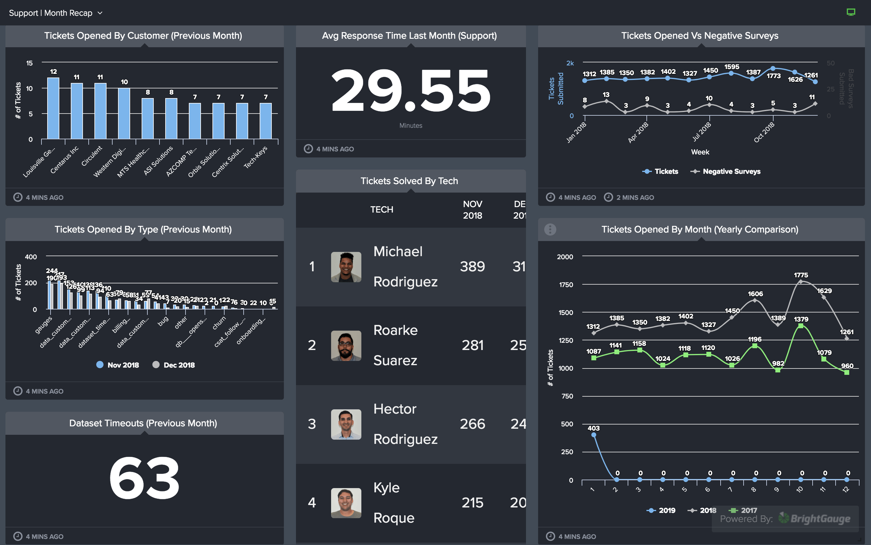 Dashboards in Reports and Dashboards (formerly BrightGauge) help drive a culture of accountability and action internally, but dashboards can also be extended to your customers. Share beautiful dashboards with customers to help drive customer satisfaction, retention, and business growth for both you and your customers.